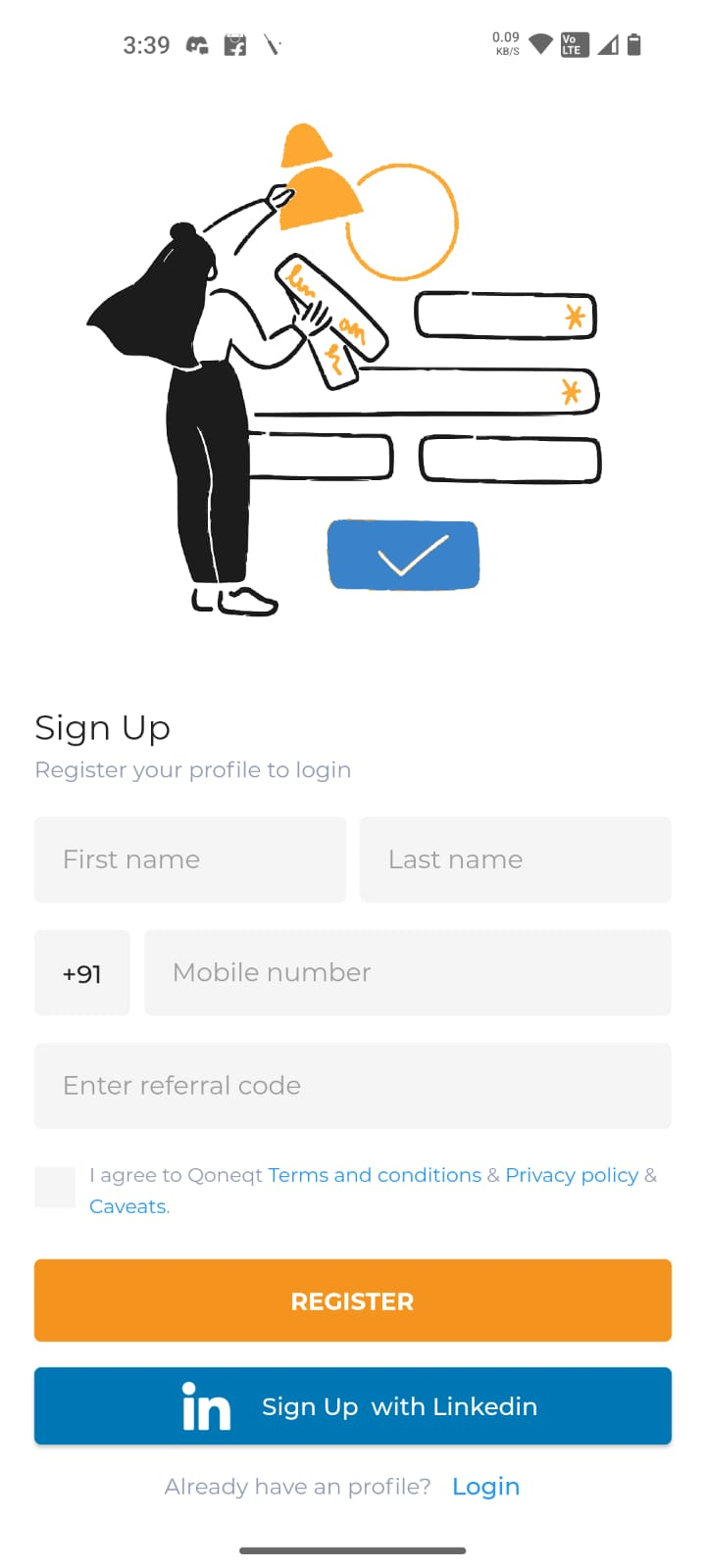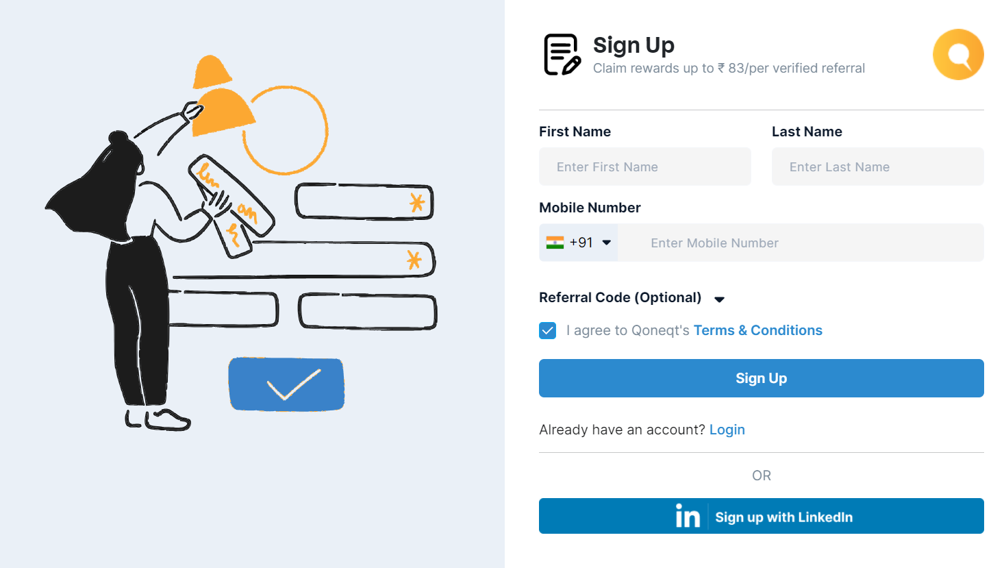 1. **Accessing Qoneqt:** Visit the Qoneqt platform on your preferred web browser or mobile app.